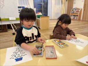 『クリスマス』をテーマにして、一人ひとりが自分で考えながら自由に作ってみました。