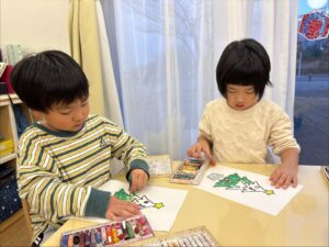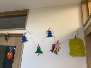 こども園ではクリスマス会を行い、12月に入ってからはクリスマスの装飾をしてクリスマスムードを楽しんでいました。