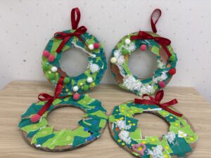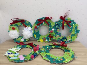 園内には飾りませんでしたが、クリスマスリース作りもしました。