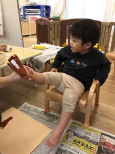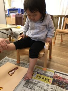 足スタンプをして、今年の干支の『午』を表現🐎