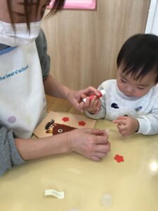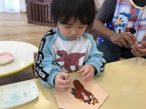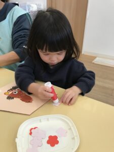 とても楽しかったようで、夢中でのり付け。